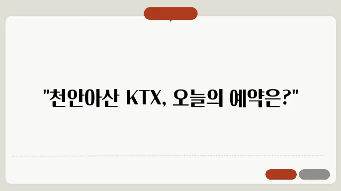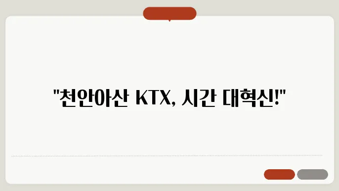| 천안 출발 KTX | 서울 방면 고속철도 | 최대 속도 300km/h | 평균 소요 시간: 약 33-50분 |