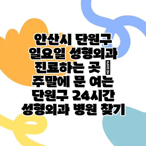 안산시 단원구에서는 몇몇 성형외과가 일요일에 진료를 합니다. 특히 대형 병원들이 주말에도 진료를 제공하니, 사전에 전화로 확인하는 것이 좋습니다.