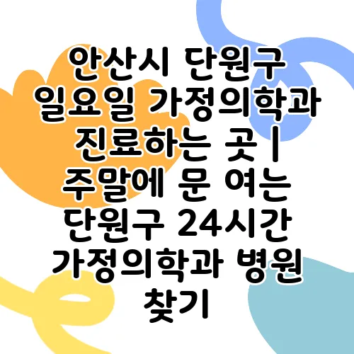 안산시 단원구에는 여러 가정의학과 병원이 있습니다. 대표적으로 '안산가정의학과의원'과 '단원구 가정의학과 클리닉'이 있습니다. 이들 병원은 다양한 진료를 제공하며, 주말에도 운영하는 곳이 있으니 방문 전에 전화 문의를 하시는 것이 좋습니다.