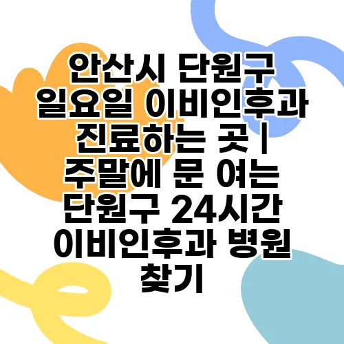 안산시 단원구에는 일요일에도 진료하는 이비인후과 병원이 몇 곳 있습니다. 예를 들어, A병원과 B병원은 일요일에 정상 진료를 합니다. 정확한 시간과 예약 방법은 병원에 직접 문의하시거나 웹사이트를 참고하시는 것이 좋습니다.