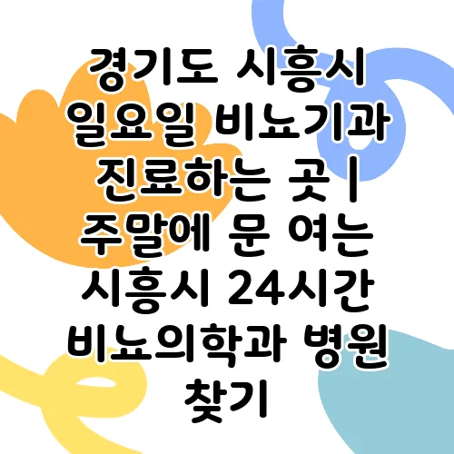 시흥시에서 일요일에 진료를 하는 비뇨기과는 다양한 병원이 있지만, 대표적으로 '○○비뇨기과', '△△종합병원 비뇨기과'가 있습니다. 방문 전에 전화로 진료 여부를 확인하는 것이 좋습니다.